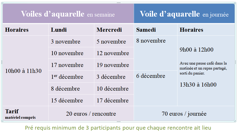 Dans cette optique, je vous propose sur les mois de Novembre et de Décembre, une peinture en voile d’aquarelle.